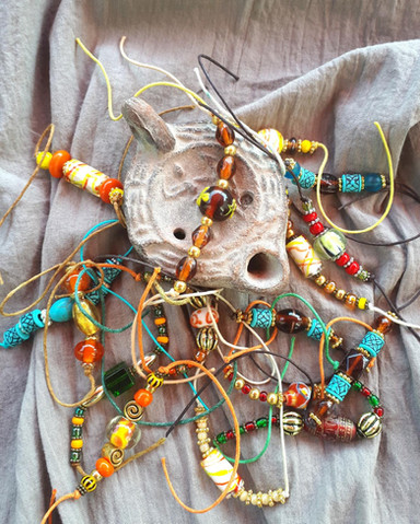 Auf meiner Suche nach Glasperlen, die möglichst exakt nach keltischen und römischen Vorbildern gearbeitet wurden, stieß ich schnell an eine Grenze. Die meisten angebotenen Perlen hielten dem „strengen Auge“ der Archäologin einfach nicht stand …